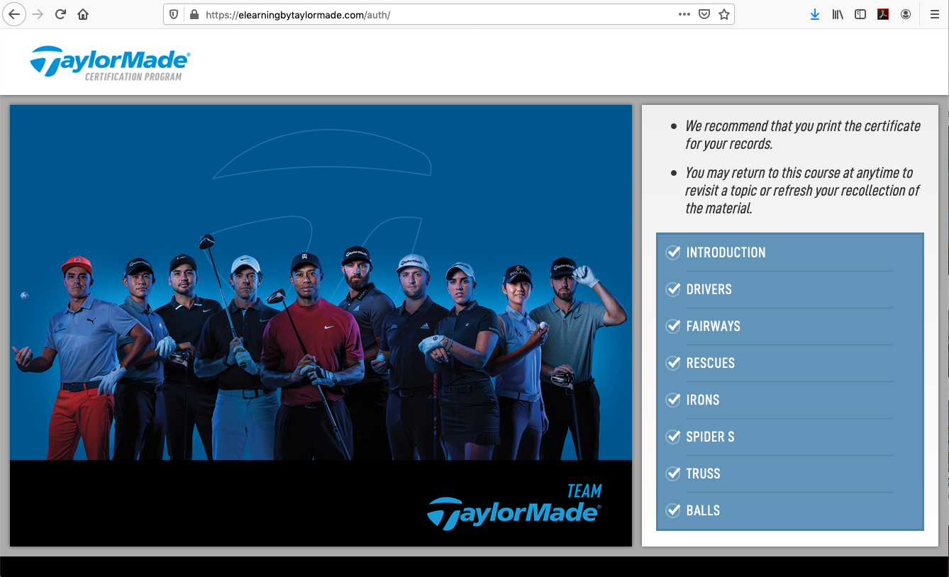 But the biggest thing that jumped out at us was the eLearning programs we build for clients like TaylorMade Golf. With such a large sales network of retail sales associates, TaylorMade can’t personally train everyone in the field about their new seasonal product lines. Instead, we’ve built a comprehensive eLearning and certification program for them that allows their retail partners to have all their salespeople gain the TaylorMade product knowledge they need online. At their own pace, on whatever device they choose. And we even tied it to TaylorMade’s eCommerce site to provide incentives for course completion.